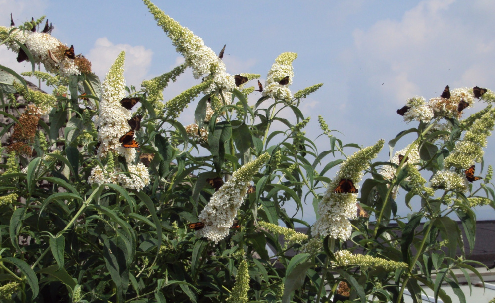 We also have in the shrubery a buddleja davidii. We sometimes leave it alone but then it gets too big so it is pruned back. This one hardly attracks any bees or butterflies. Strange times.