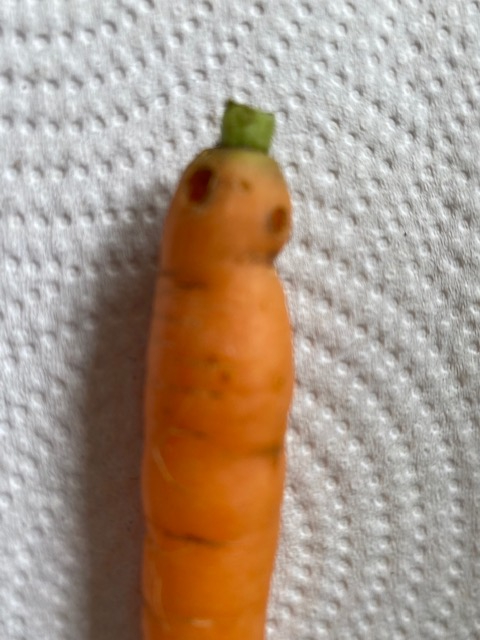 It's only affected a couple of my small carrot crop, but any idea what might have caused the neat holes in this carrot? Apologies that the photo is slightly out of focus.