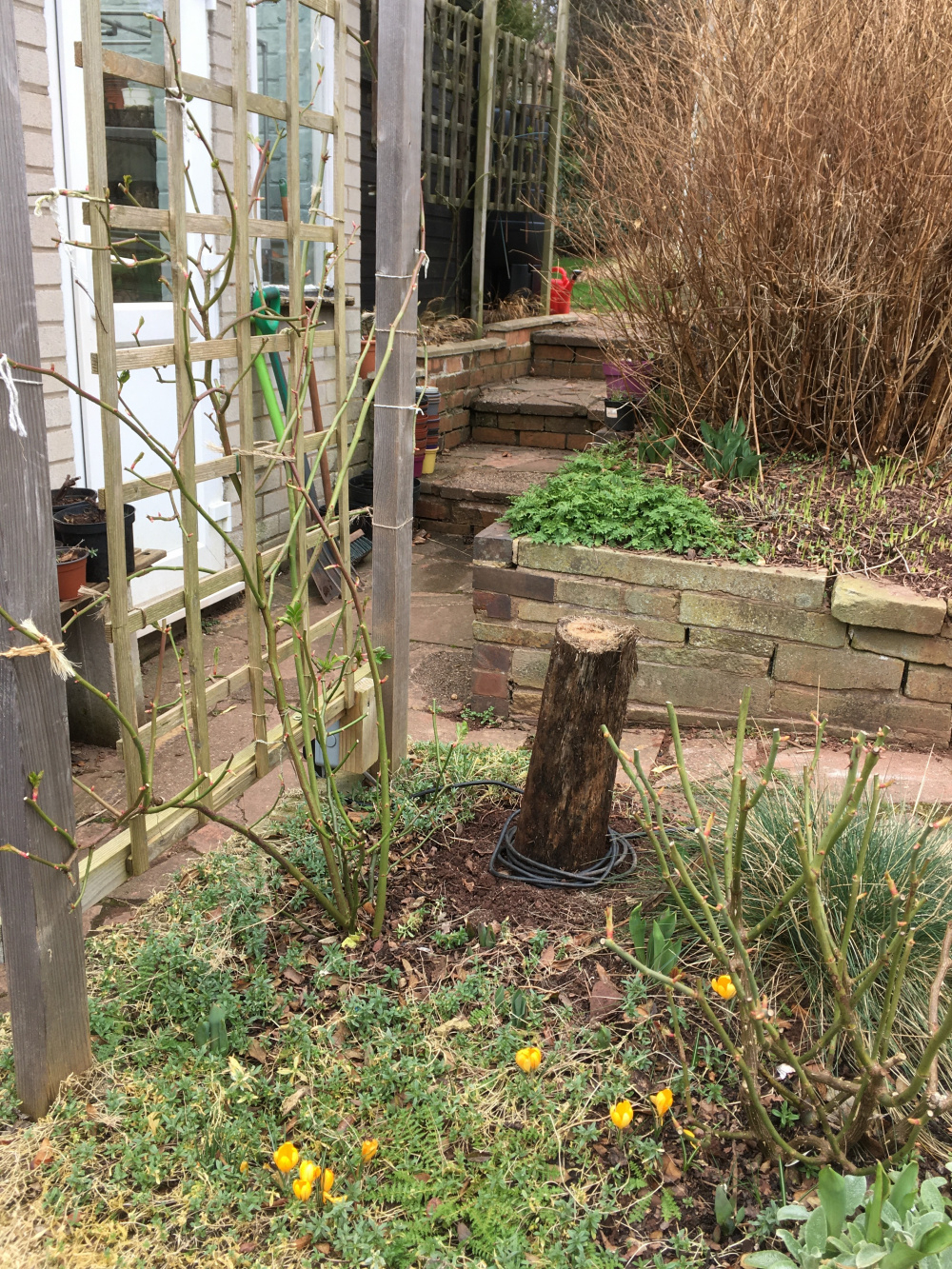 2 of my Cordylines have succumbed over winter. I was planning to grow Ghislaine around this one so i've lost that support. Oh well. I tried to dig it out but it's a bit too large for that to be easy to accomplish, so cut it at knee height for now. Will need to find a way to kill the stump and root now so it doesn't regenerate if anyone has any suggestions?