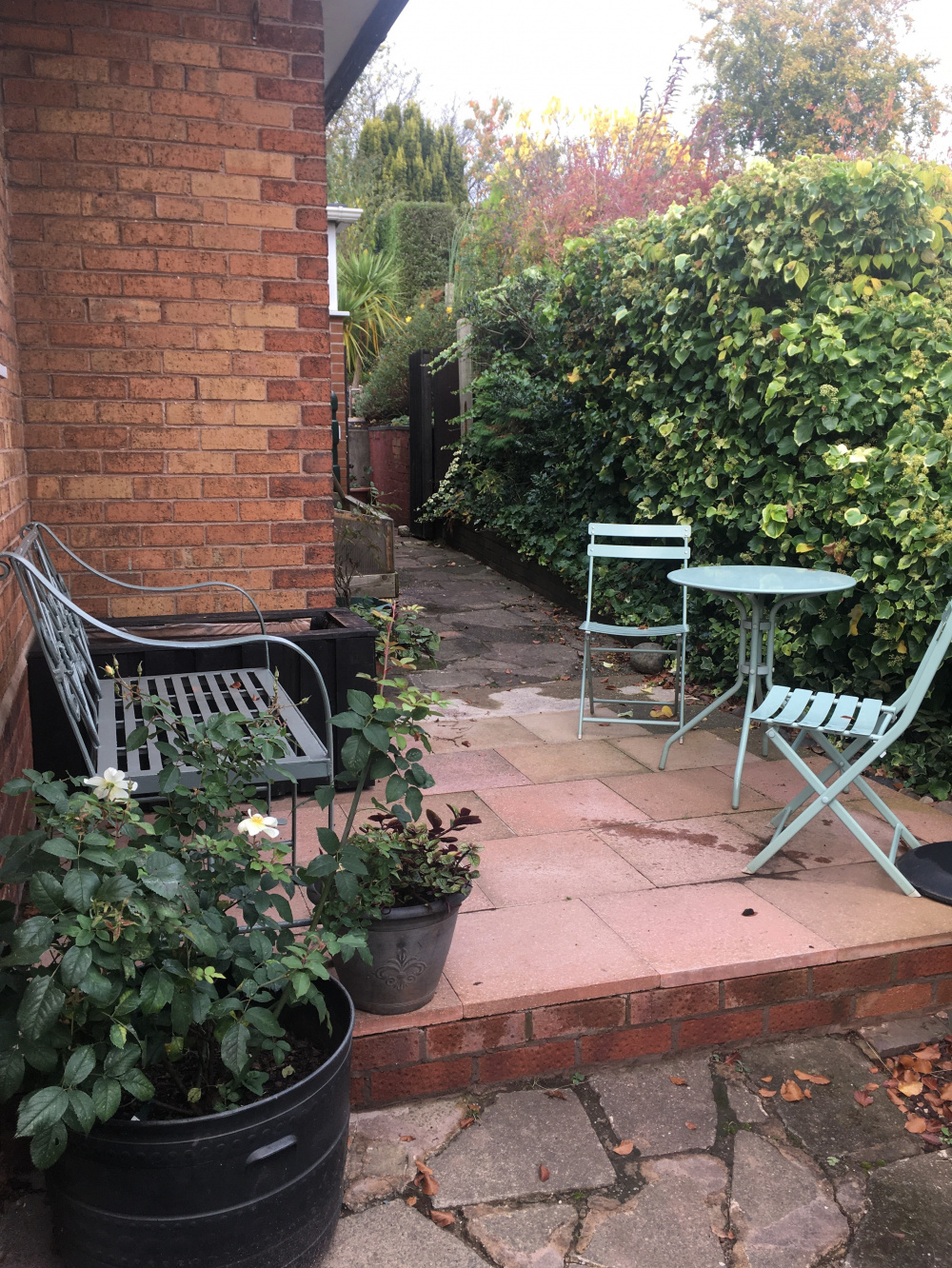I've also been working on this previously unused and unkempt area this year. It is east facing so getting morning sun and then shaded from about 2pm in high summer to provide some welcome relief. Seemed ideal for a nice cosy seating area, so that's what we did..