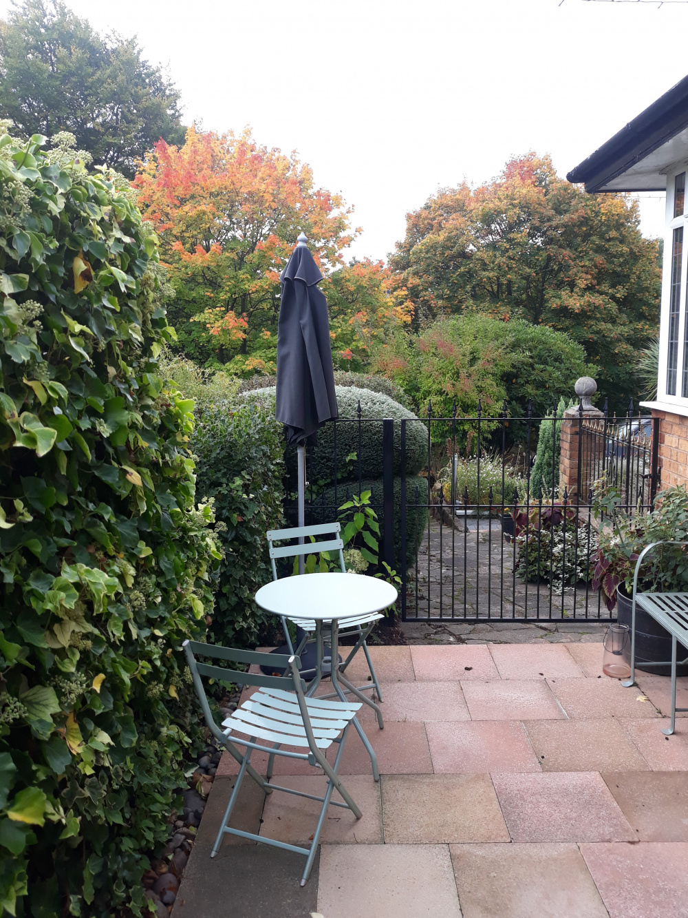 It is east facing so getting morning sun and then shaded from about 2pm in high summer to provide some welcome relief.