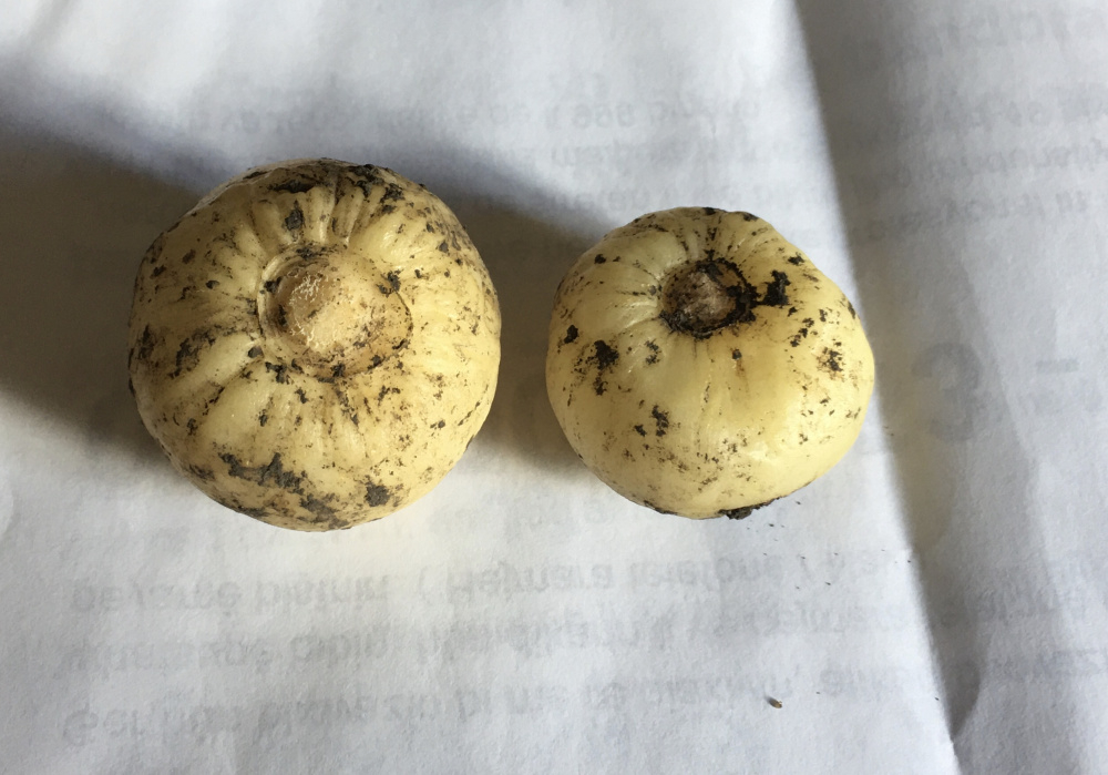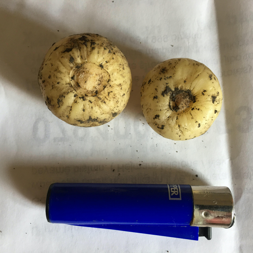 These were unearthed in a friend's garden last week - hundreds of them - all this size, no roots. Hard, like tiny turnips. Any ideas?