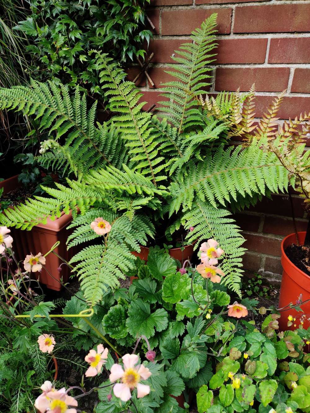 so far I have decided on two pots; one with athyrium riponicum var. pictum and Pulmonaria ‘Trevi fountain’, and the other with digitalis ‘goldcrest’ and a fern I found at a garden centre recently. I’m struggling to think of a combinatikn for another container as I think 2 would look odd- any ideas?