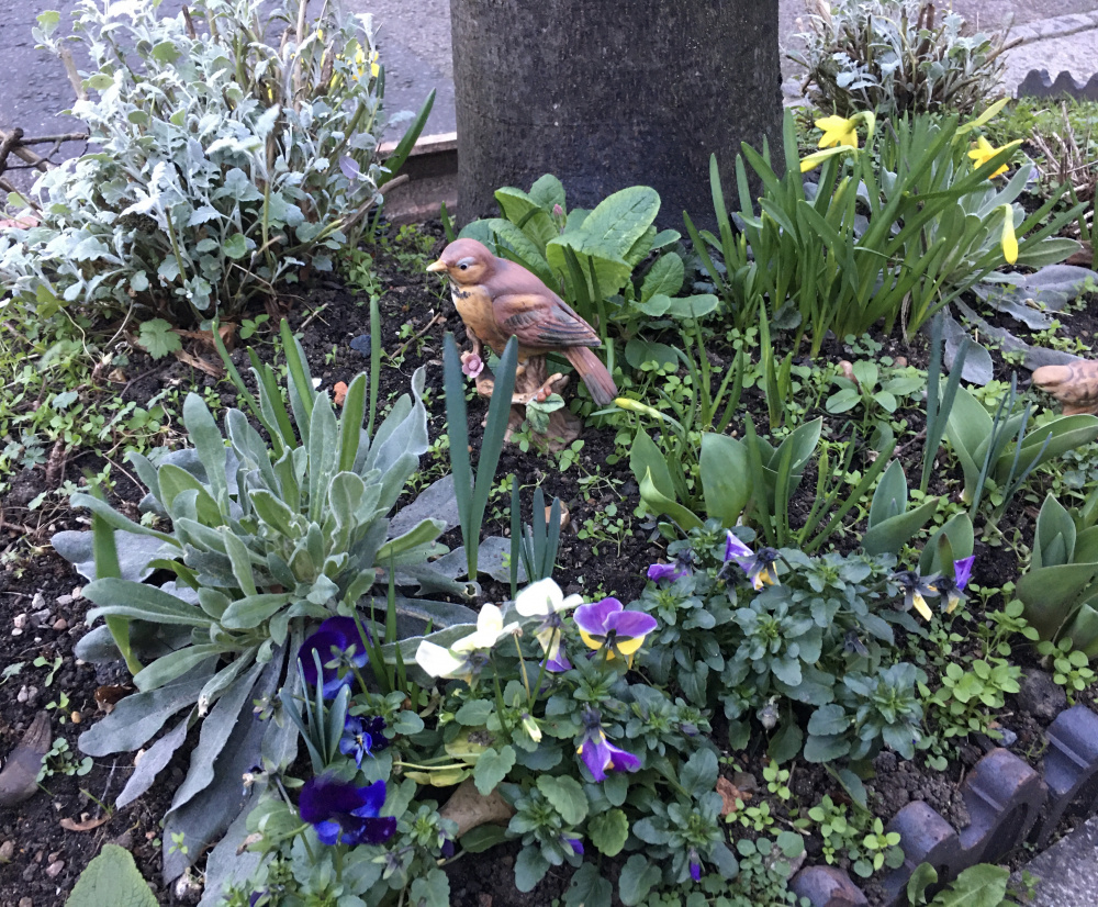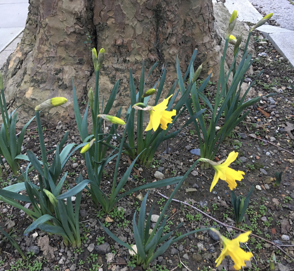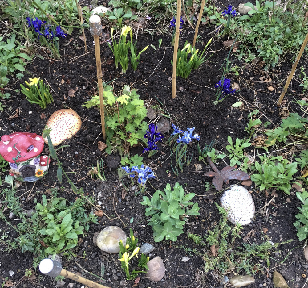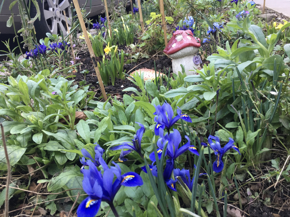 The main plot (planted for pollinators) is full of tete-a-tete and iris retic. Some builders decided it was fine to take all the guard sticks and signs out and trample all over it, rather than walking around the plot when unloading their van. They broke a lot of plants. When told it is a garden and not to walk over it, they then did it again the next day. Sigh.
