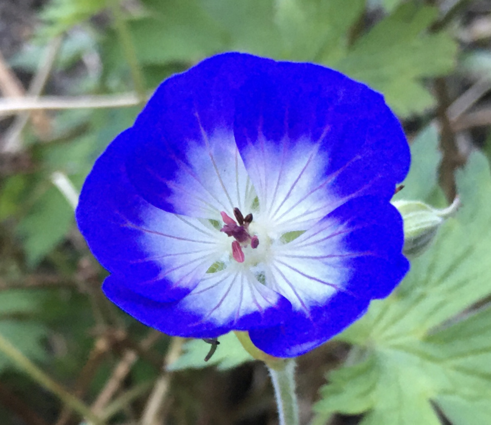 We even have some brave forgetmenots starting there and some Rozanne buds. One very neon blue flower is out, tossing in the wind.