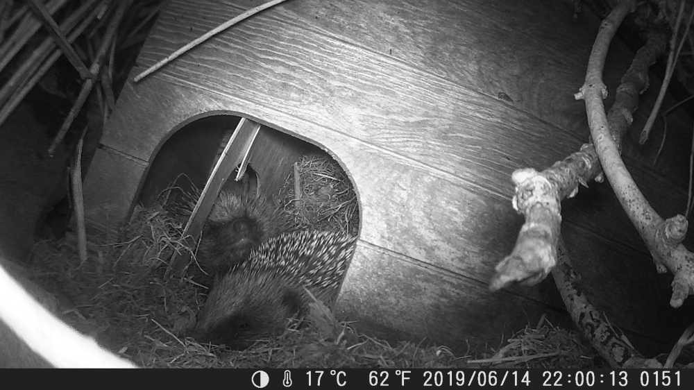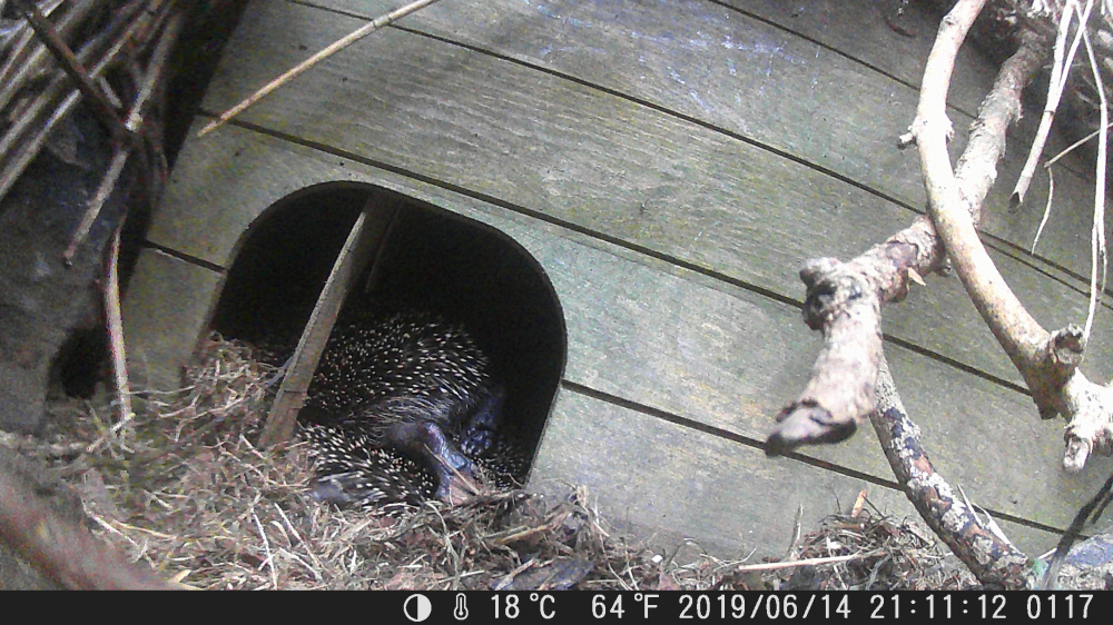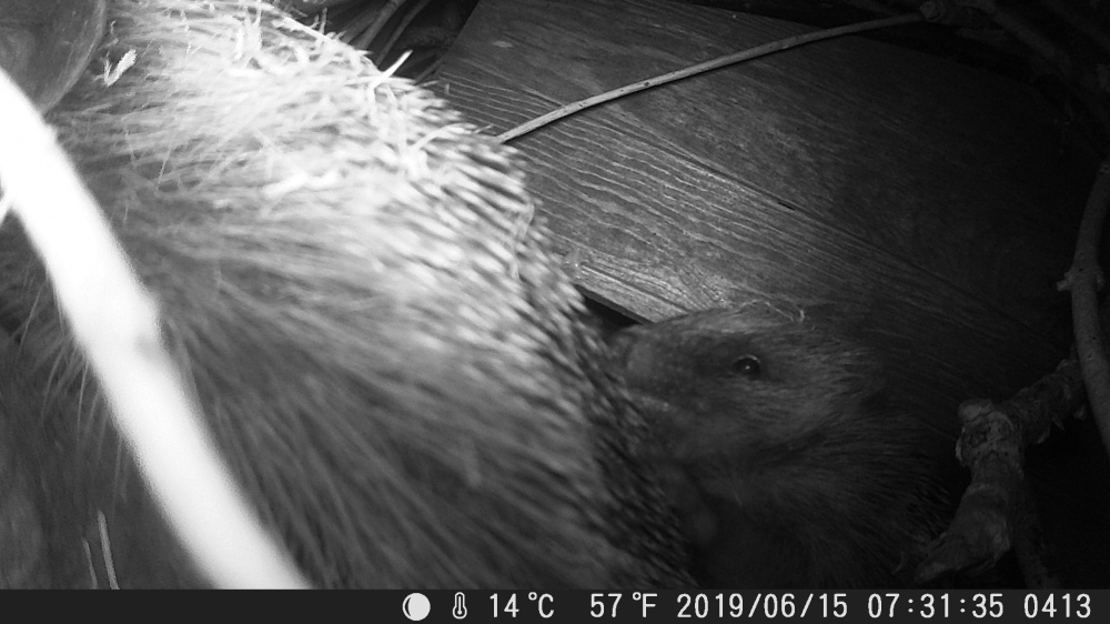 @AnniD there's no crying coming from the house. They're all inside now and I can see a patch of darker spines that may be the mum. I've put the trail cam pointed at the door to catch any movement.
