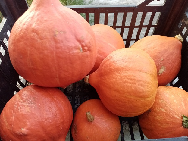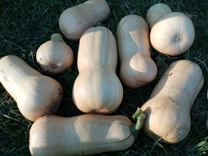 Here is my little harvest. I had only one butternut plant and seven squashes on it. I sow seeds directly in the soil on the end of April.