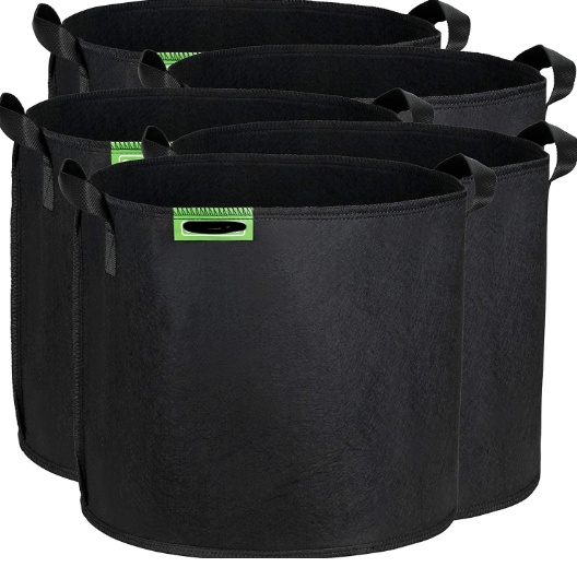 Fabric Grow bags and mulching for vegetable container gardening