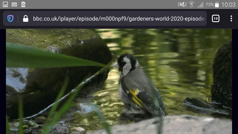 Monty had a bird having a bath in the pond. It was grey, black, and white with yellow flashes on the wings. T'other half thought it a juvenile goldfinch but the colours are wrong. Did the cameraman have a wrong colour filter on, or is it something else entirely?