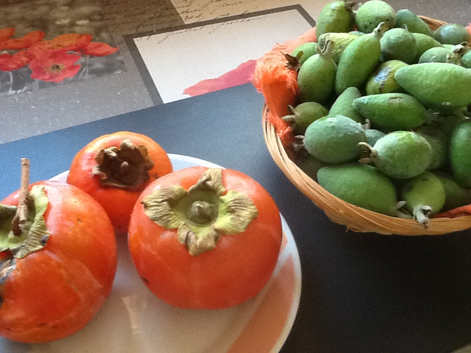 Persimmons and feijoas are on the autumnal menu! A good hoeing is worth two waterings.
