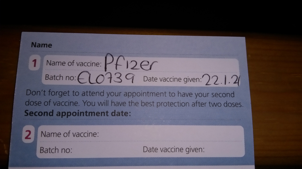 Chey is very fortunate to be in an area where they are able to vaccinate the over 70's and clinically vulnerable. Suffolk has the worst rate for vaccinations - as of yesterday only 36% of the over 80's had been done. Surgeries are having problems getting the vaccine apparently. Hopefully things will improve.