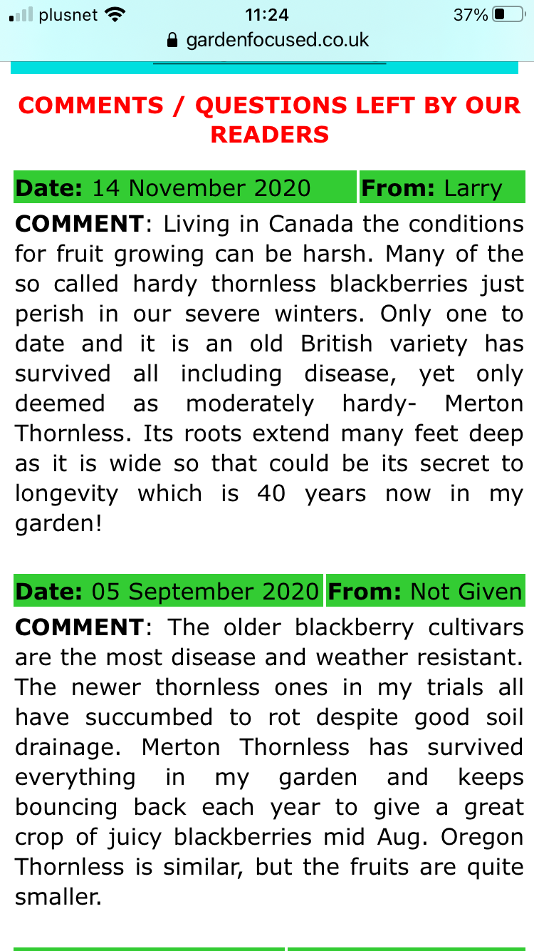im just after a little advice on Mertons thornless blackberry. I have a raised bed that’s 50 wide and 160cm long against a sleeper wall in full sun. Would this variety fill this bed or could I make a container at one end and train along the wall and use the rest of the bed for something else or would it fill the bed completely? I would rather keep it contained than letting in run a mock but not sure if it’s habit. How long do the stems grow? I’ve not grown blackberries before- at least not intentionally lol! Any help would be appreciated! 😃