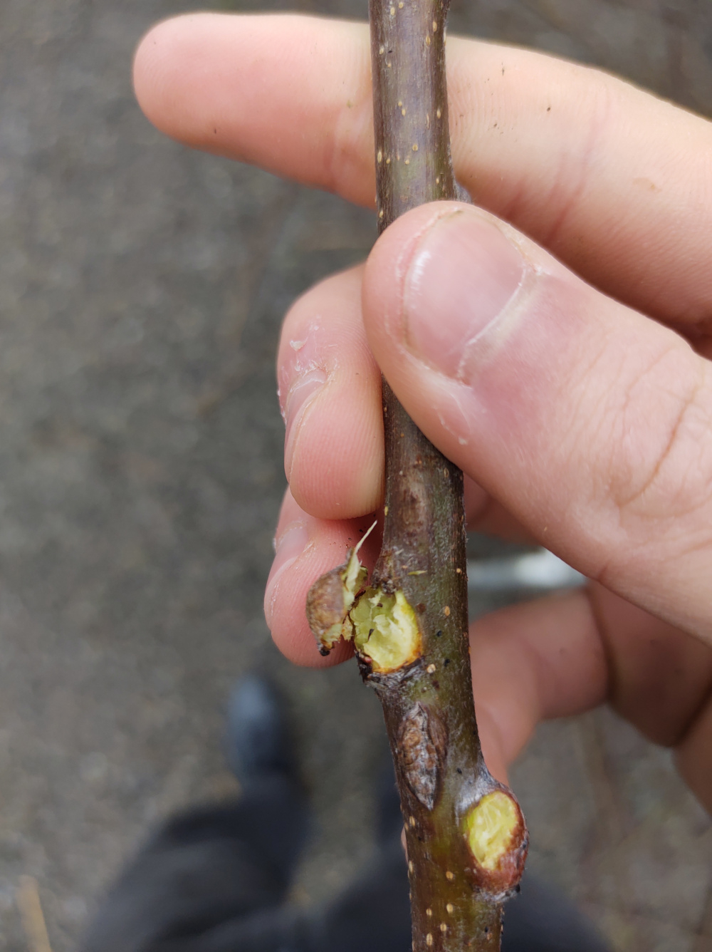 Hi there, pruning the apple trees today, noticed that on only one section of only one apple tree there are some sort of funny outgrowth on the branches/twigs I'm cutting off, sort of look like buds but a bit different, looks like it could be a disease to me but I'm not an expert in that. I looked through every possible page I could find with common diseases etc, can't find anything similar. See several pictures attached, taken of two different twigs.