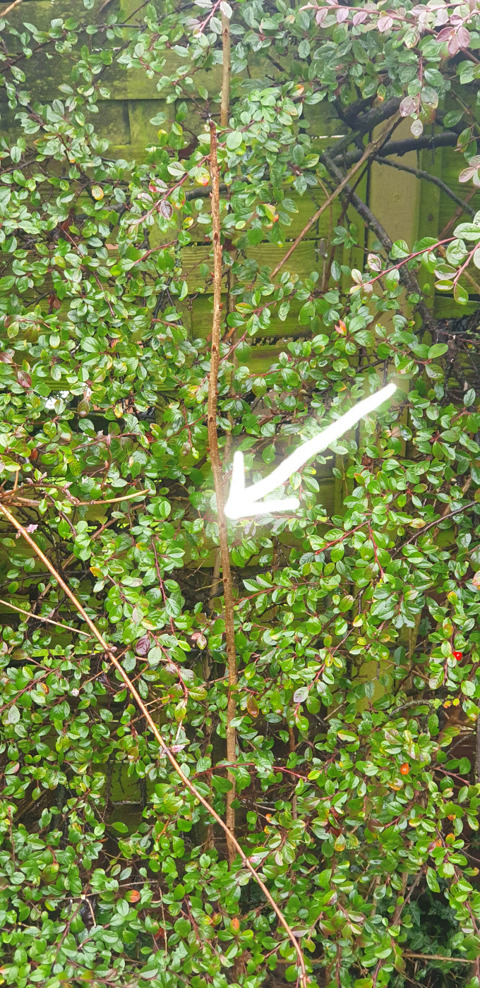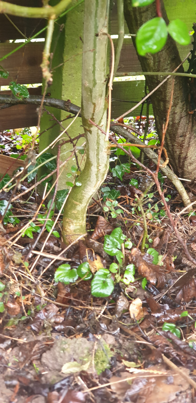Hi, does anyone have any idea what this weed/plant could be? Its really tall with a very thick stem and has grown up through a cherry tree. It also seems to be sending up new shoots further along that grow straight upwards. Earlier in the year it had green pointed leaves on. Ive searched on google but cant really find anything like it and we're trying to find the best way to get rid of it. Ive attached a photo of the base, the main stem infront of the cherry tree trunk and one of one of the shoots growing up.
