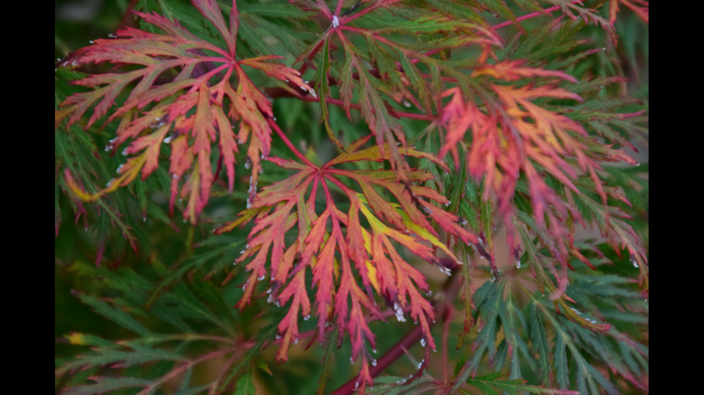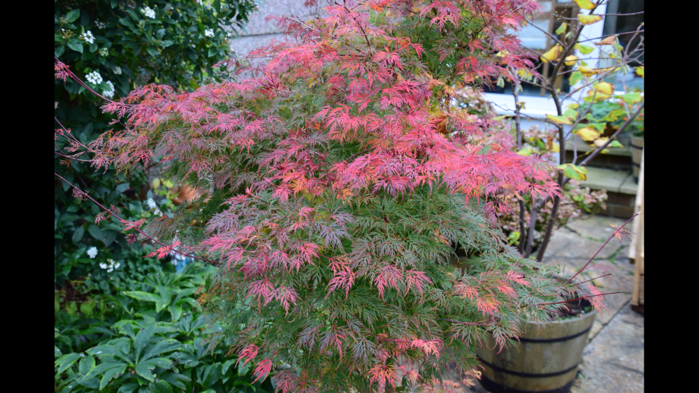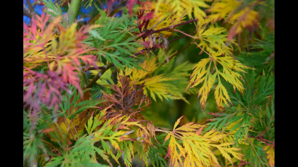 Just put the covers on the benches outside , the frost proofing on the tap and saw the colours on the acer up close (the blue in the photos isn't the sky - that's a leaden grey).