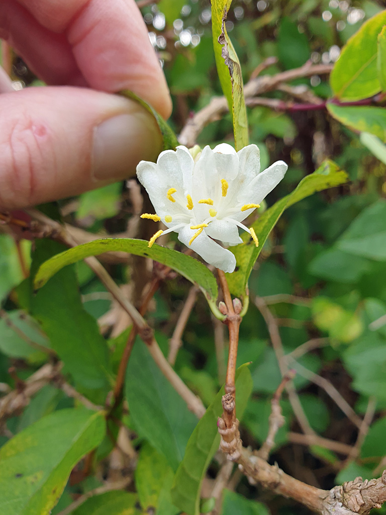 We've still got a few flowers doing their thing here in November. The first one - Lonicera purpusii (winter honeysuckle) - has only just started. The scent from this one flower is amazing: