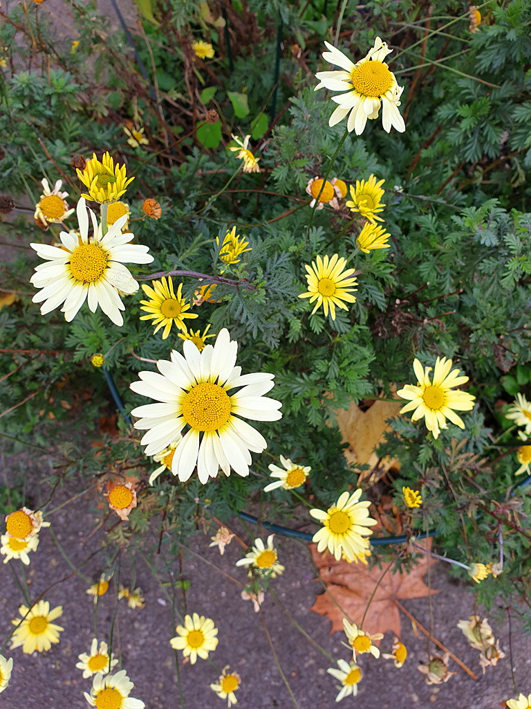 Having dead-headed the Anthemis tinctoria 'E.C.Buxton' after it's main flush in summer, it's kept some flowers going well into November: