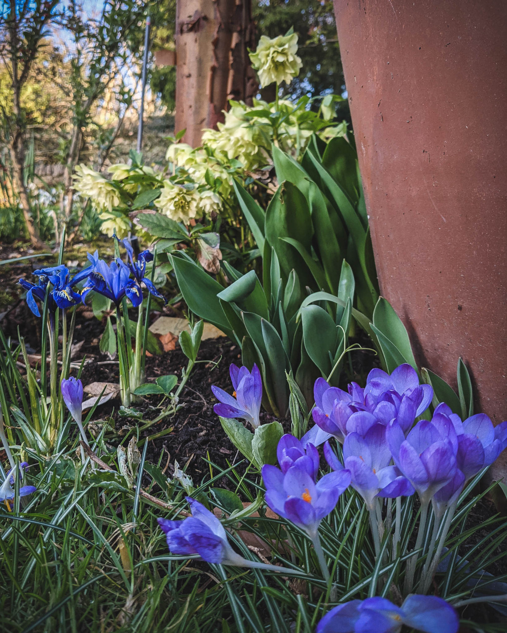My Jeanne d'Arc crocuses bloomed this week. I love how luminous they are in the sunshine.