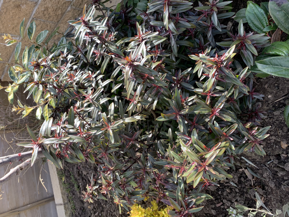 Description doesn't fit...no sign of variegated creamy green foliage. Quote Ashwood..... "A delightful evergreen shrub with long variegated bright creamy green foliage, attractively tinged purple in spring." https://www.ashwoodnurseries.com/shop/hebe-purple-shamrock.html