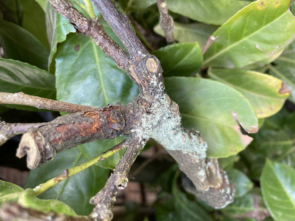Hi - I have a very established Laurel hedge that appears to be dying. We have literally pulled out trunks from the hedge with our bare hands that are rotting and dead. Leaves are being attacked and the old wood too. Many of the plants are covered in a white/grey fungus which we first noticed on a couple of plants that had been sheltered under a tree last year. We removed the tree 12 months ago to give the hedge more space to breathe. I suspect years of falling leaves have not been tidied by the previous owners and the problem may have started there. Problem now seems the whole hedge (35metres) seems to be getting affected. Leaves are turning brown and the wood on main stems is also under attack by something that looks white and scaly.