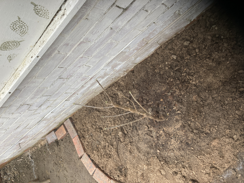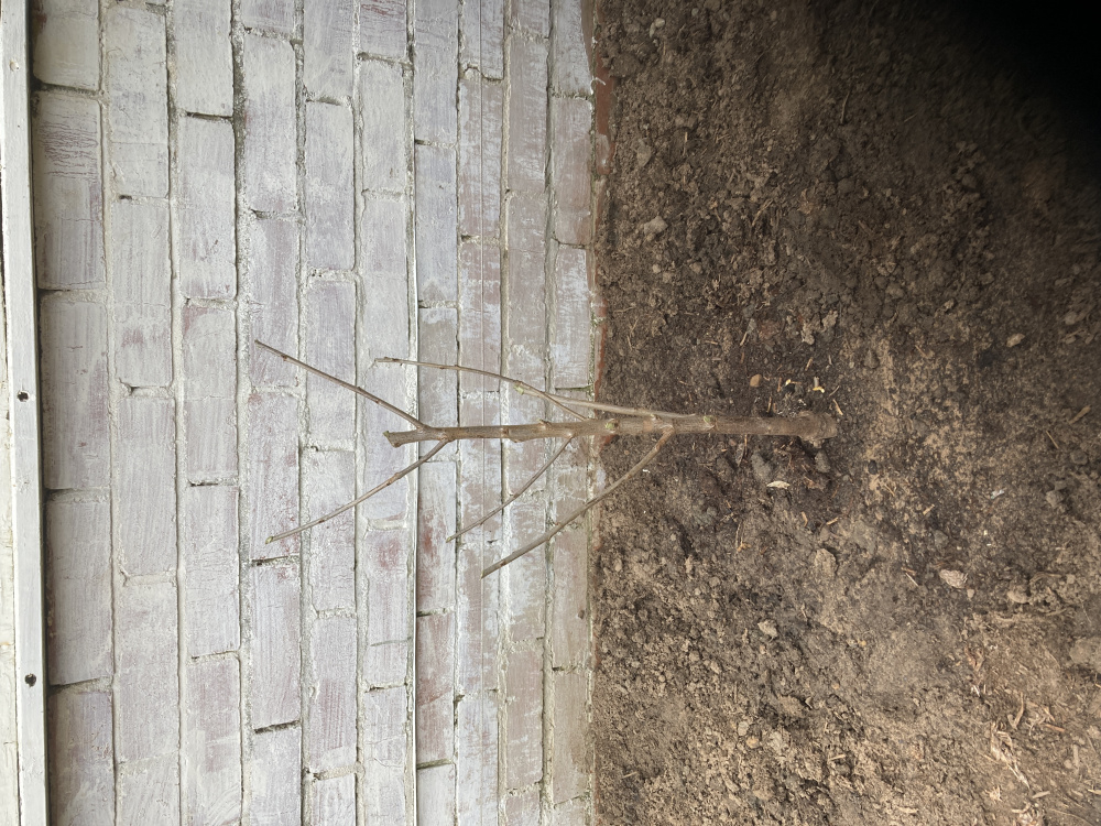 I bought a one year old bare foot tree to grow against a north facing wall. (It was a feathered maiden eg it has branches). It’s the side of our garage so I planted quite far out from the wall. For various reasons including being mid a big garden redo,