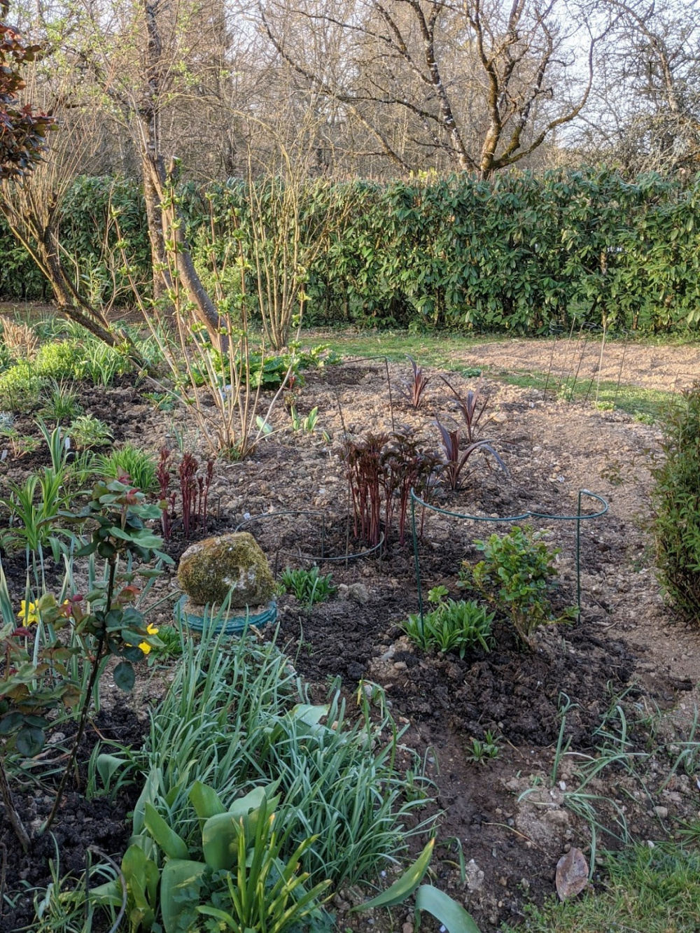 Good news though, one side of the bed where I have used existing plants, having moved them from other areas or just re-jigged them about is really starting to take off now. I have noted I need more tulips and daffs for next year, it's been a bit of a lean spring in this bed, but nice to see things getting going. Pictures below taken early this morning. I just need the other half to catch up now...