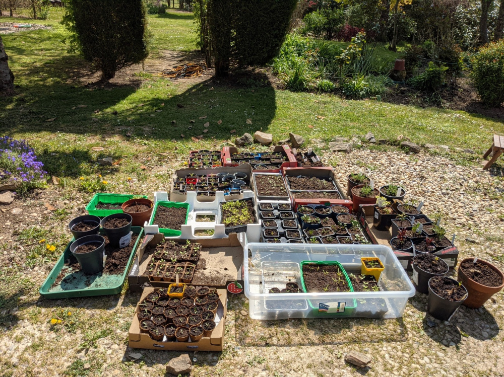 Same here @Lizzie27, I have a GH, but unfortunately as trees have grown around it it is too much in the shade for my liking so I have this lot at the front, yo-yo ing around, in the sun in the day and under the barn door shelter at night. I am also having to protect from mice/voles, so covering everything up at night too, it is becoming quite a performance morning and night.