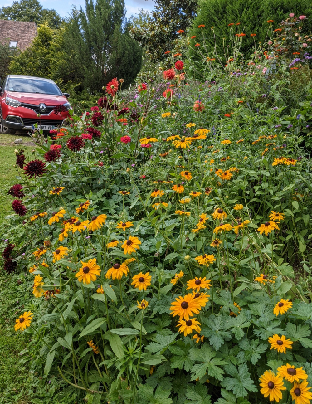 Last few weeks have settled into warm sunshine and cool damp evenings so flowers in my new hot bed are a lot more comfortable. Still not had time to weed or cut back properly but I'm pleased with my fleeting views as I dash out to work. A lot of notes to self about moving things around next year.
