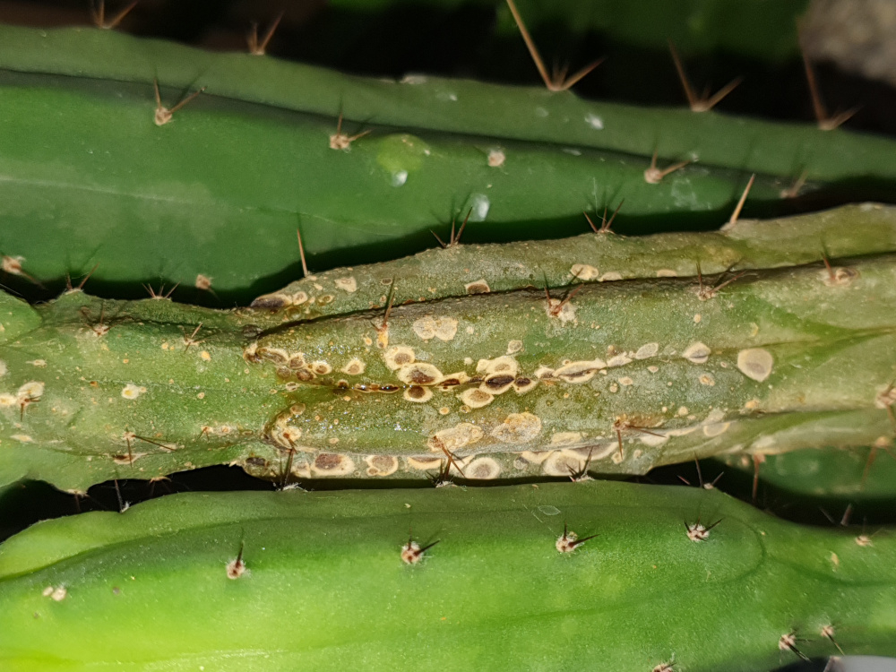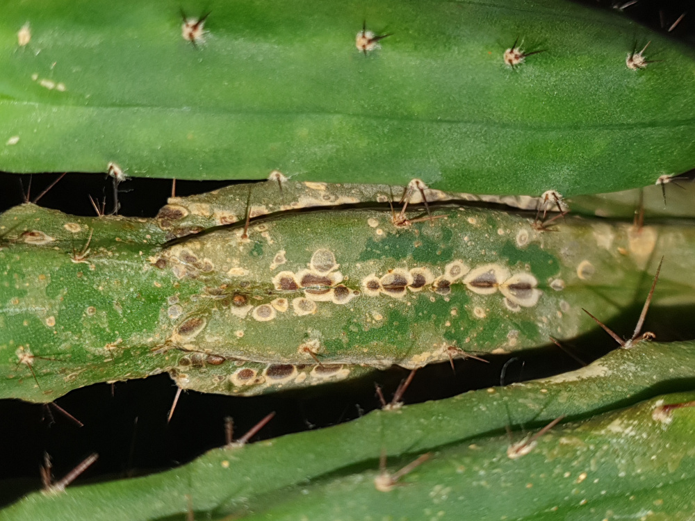 Hello. I have some black spots on my cactus and would really appreciate some advice please. I have tried to research whether this is normal or not but not sure if this has been caused by damage or the cactus has some scale. Any cactus experts willing to help, I would be very grateful. I have included a full pic of the cactus. The rest looks relatively OK. Thank you