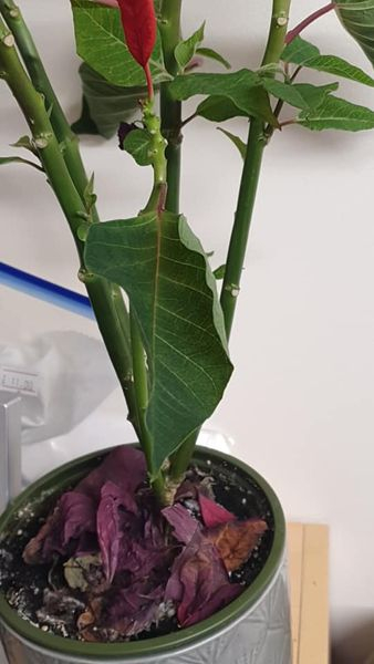 I hope this is allowed! I think I over watered my pointestta as the leaves have started curling. Any tips, should I leave it or what