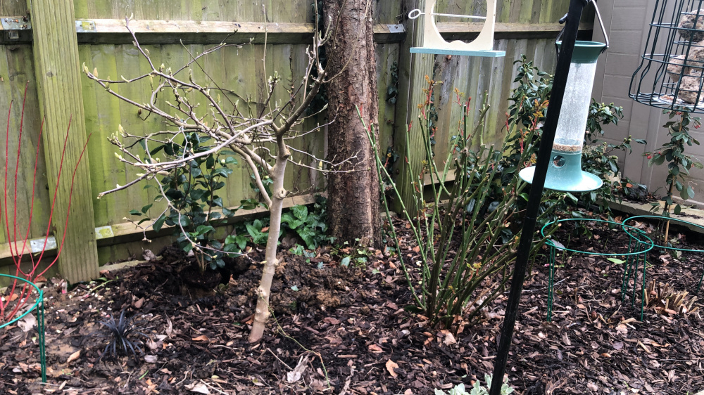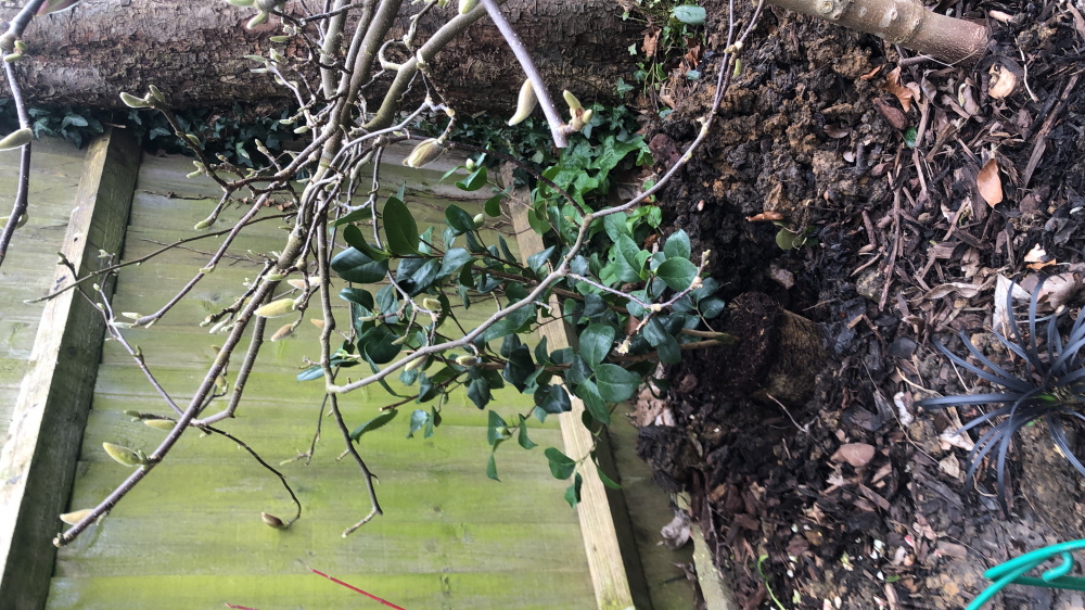 I have another Camelia doing well and thought I’d plant anew one on the other side , behind a magnolia tree - the Camelia is touching the magnolia and I don’t really want to prune the magnolia as I have just cut off half of it to make it into a tree and less shrub like and got a nice shape at the top .