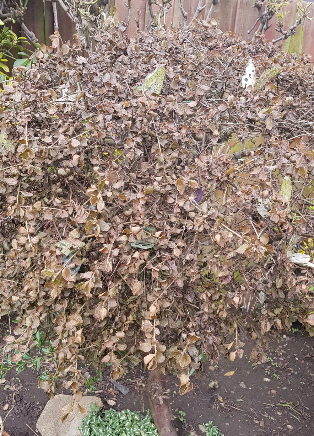 I've had this Ceanothus for years and all of a sudden it looks very unhealthy. It has shoots growing from the side but the main plant looks very dry. Any ideas of what to do?