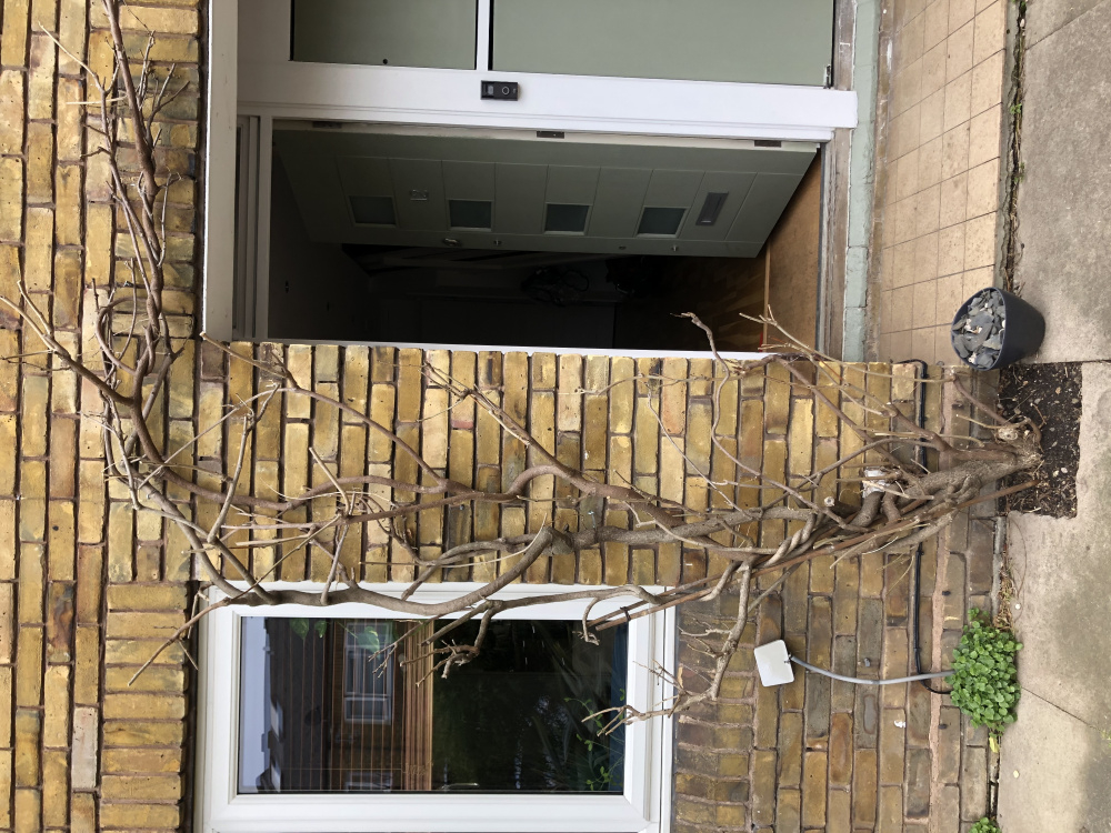 For the February prune I cut back any stem heading up behind gutters and trying to get into the roof tiles and then, when they've been cleared, I check the general shape and prune out any that looks unbalanced.
