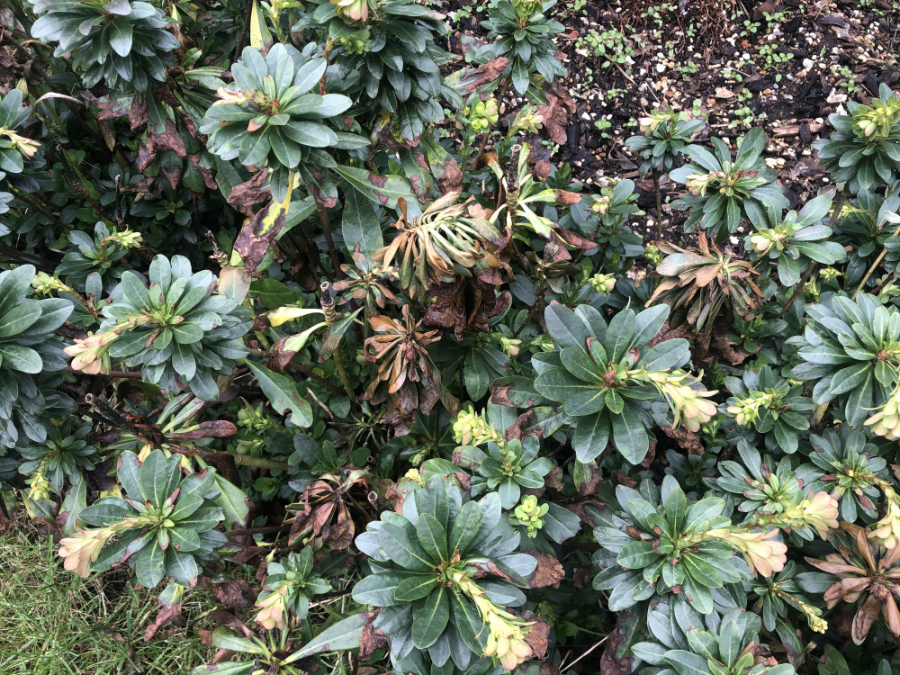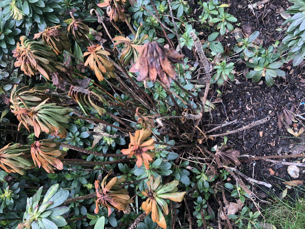 My usually indestructible Euphorbia mini hedge is looking somewhat unhealthy as we head into Spring.