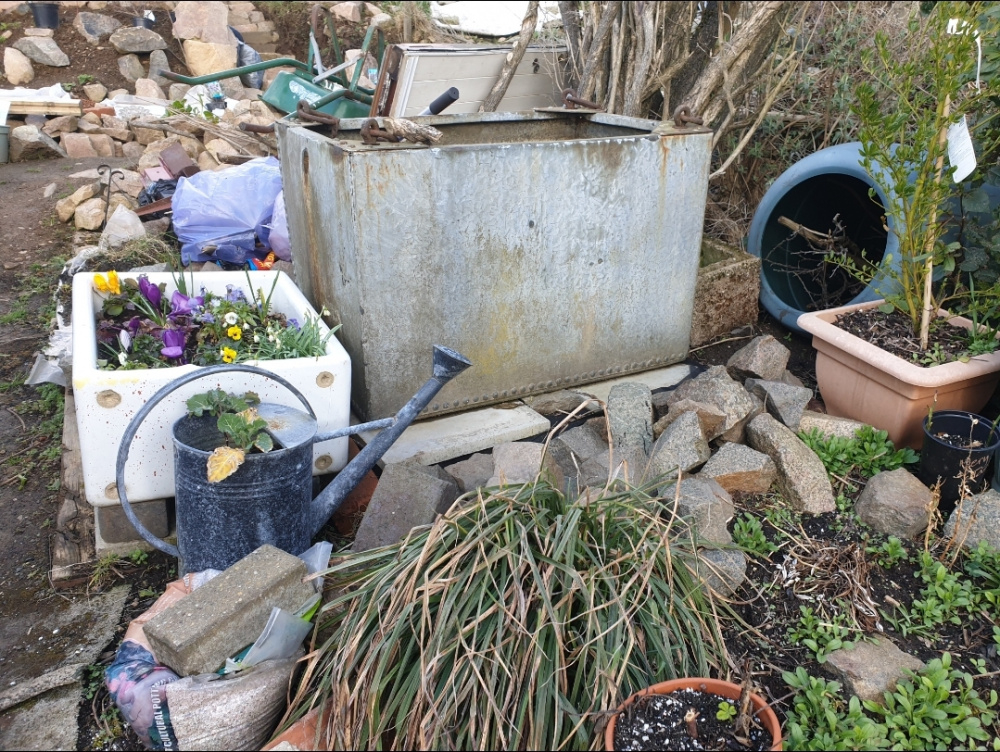 Any help or advise please. I saved the water trough from my partners Dad's house which had to be sold thought be good as water collection. I'm slowly working through the overwhelming quarry garden and hoping this will be a quick fix.