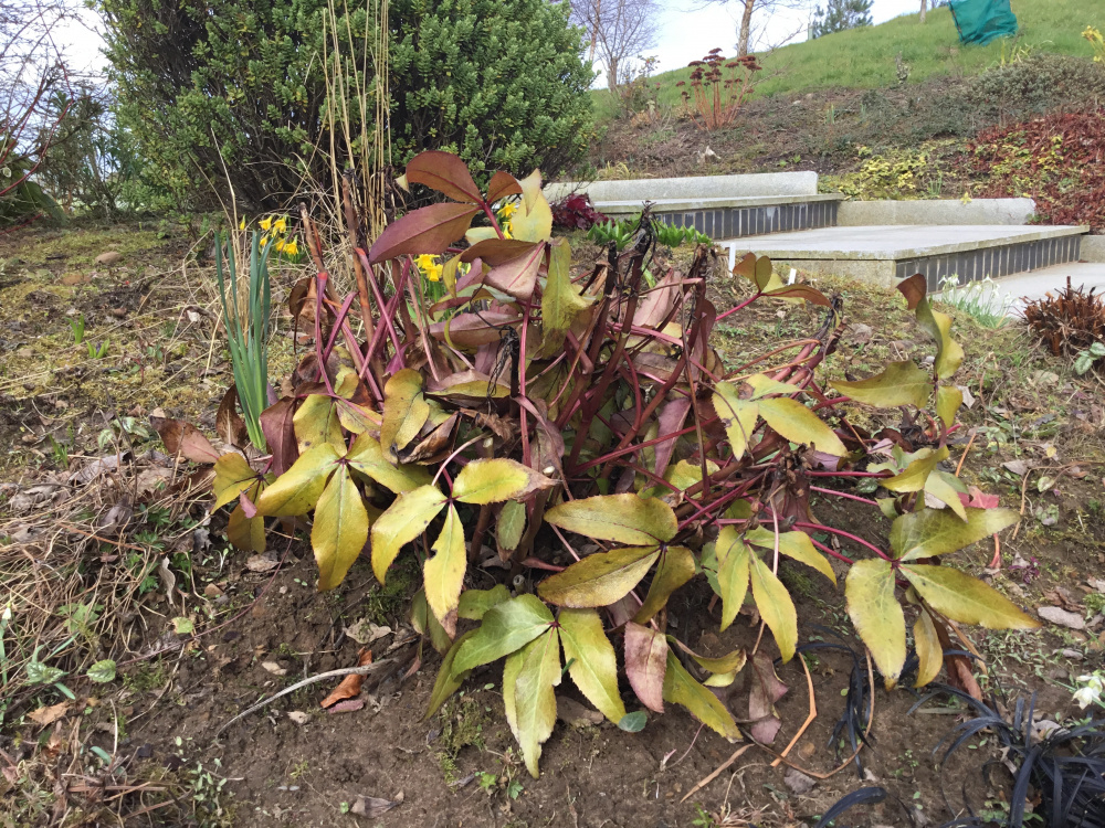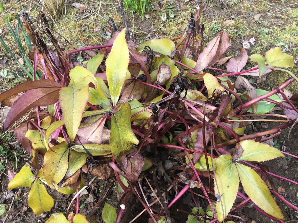 Here are 2 photos of a very unhappy hellebore. It’s 4 or 5 years old and has been fine till now. Could this be the dreaded Hellebore Black Death? There’s no sign of mildew.