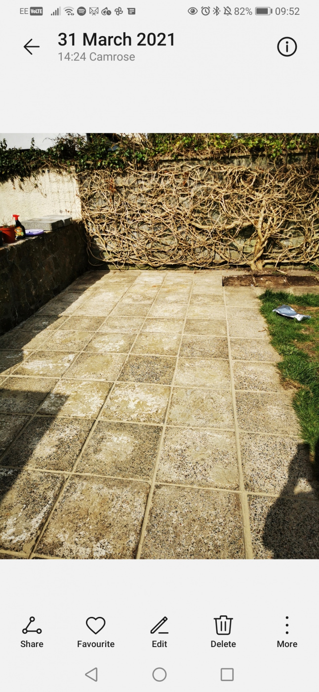 This is how the slabs are looking after a pressure wash, then bleach rubbed in with a stiff garden broom, left and wrinsed.. So a slight improvement but still pretty grubby! Anything else I can try to get them looking like new?