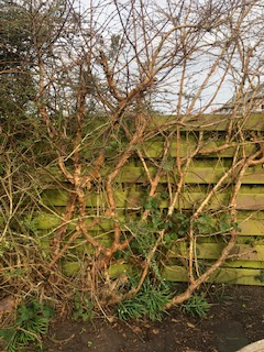 Then shorten any stems growing away from the fence and into the garden, taking them back either to a main stem or just above a bud. Do the same with stems growing up above the fence. That should then give you a basic framework.