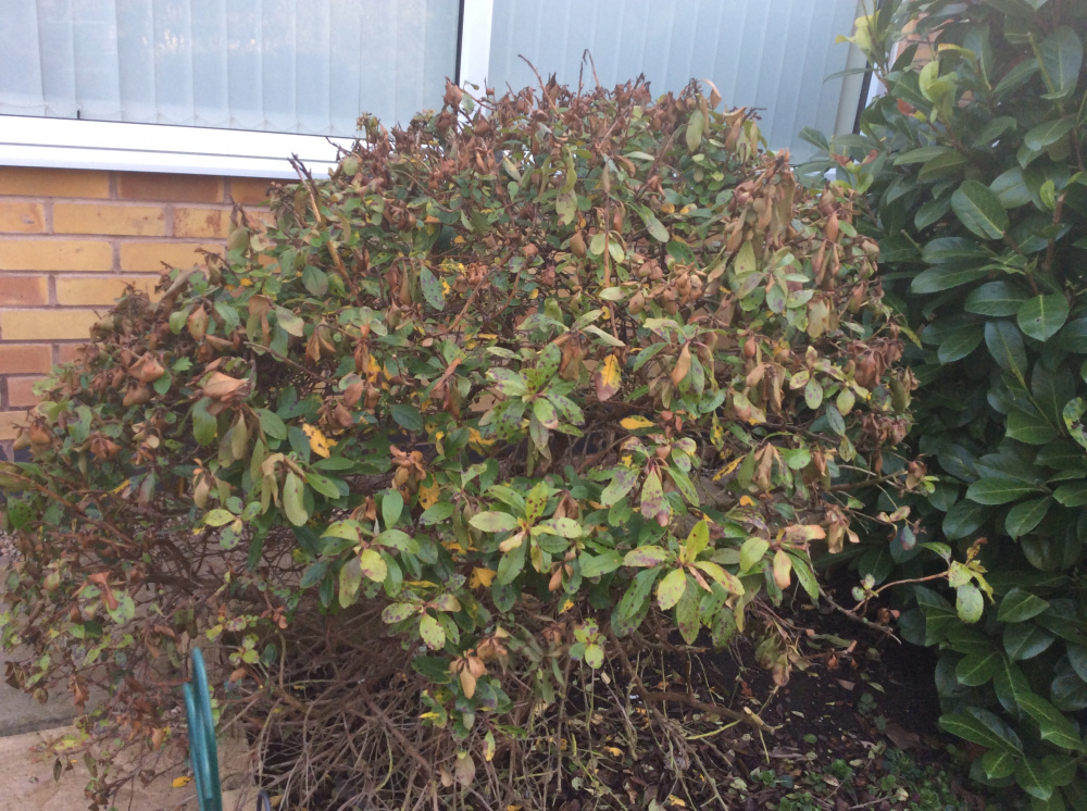 Hi everyone,I’ve forgotten the name of this bush,which I planted about 8 years ago, when it was very small,I don’t know whether it is dying now or it just needs a good pruning.It has not looked too good for a couple of years now,& the underneath is quite bare,I would be very grateful if someone could give me some advice.Thank you in advance.