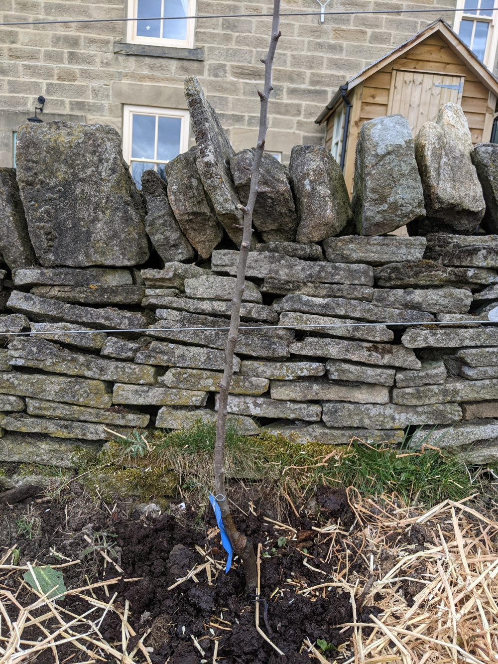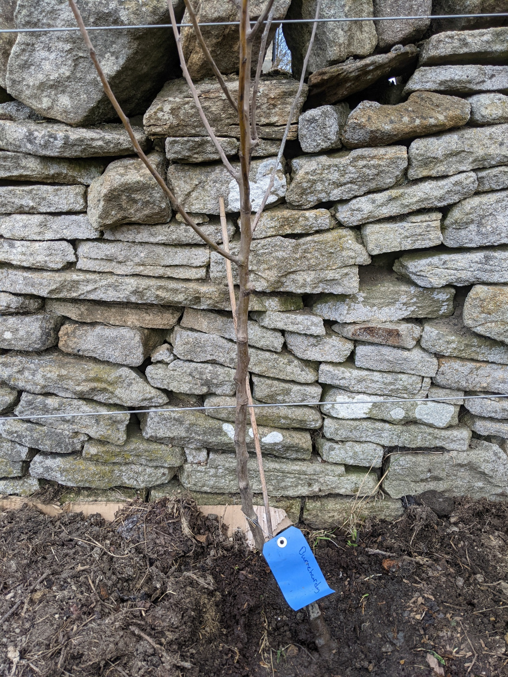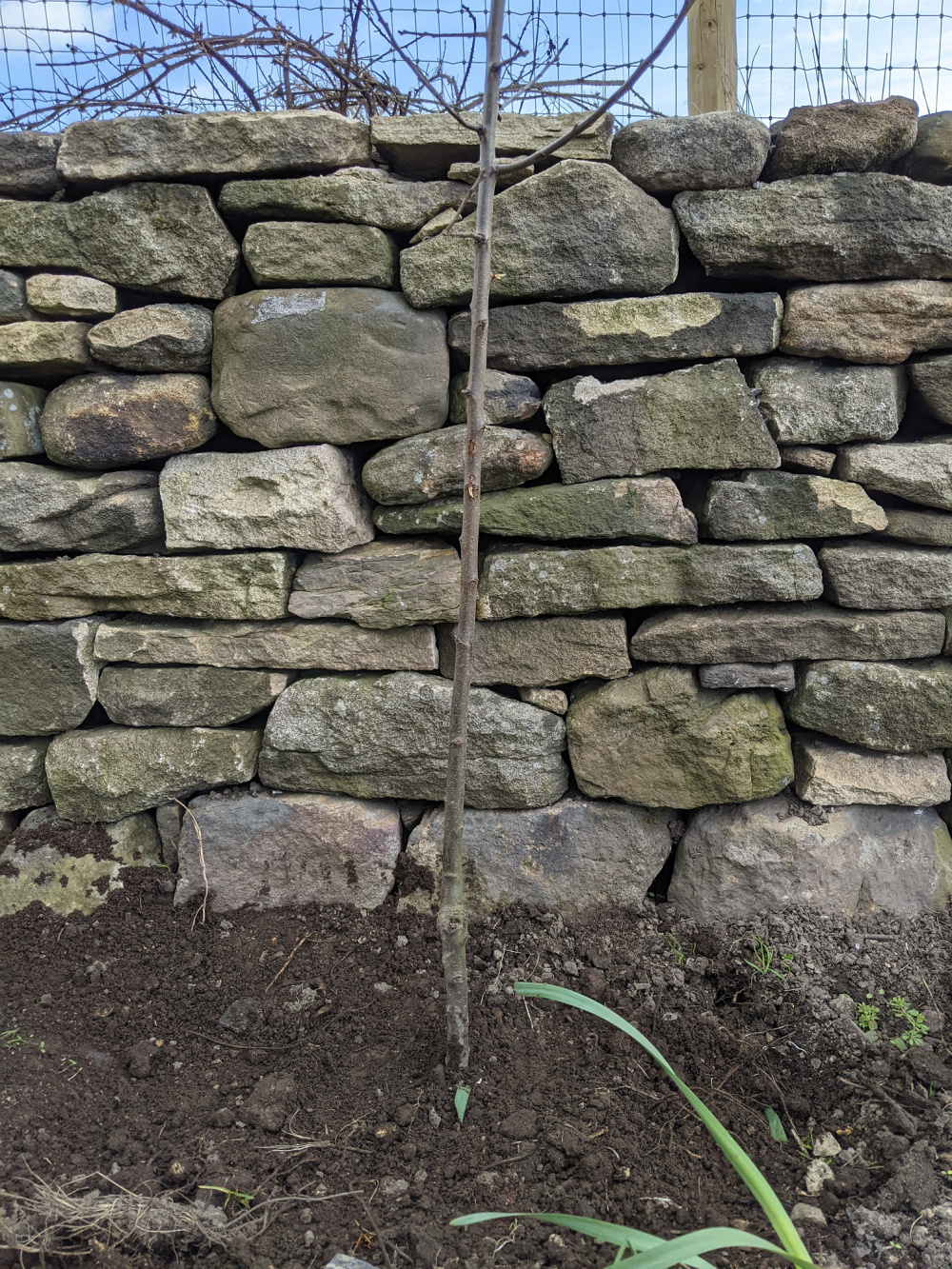The plum is similar. A lot of bare stem before any branches. It's meant to be trained as a fan.