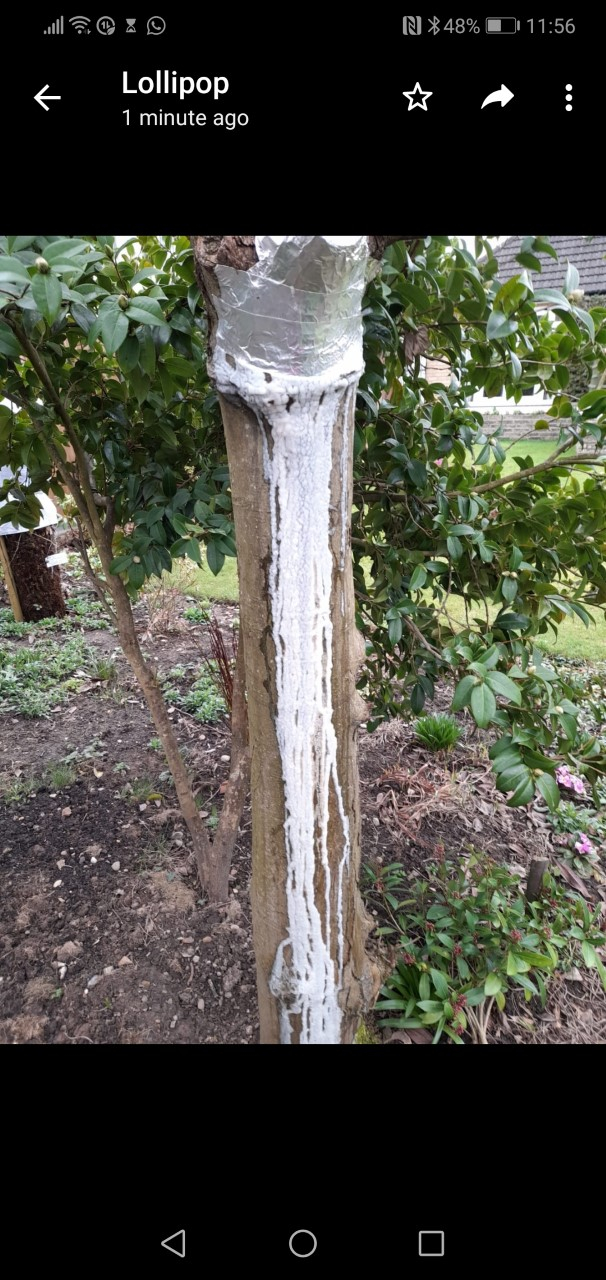 You may loose the tree, but I'd take off the covering and see if it will heal by itself and keep your fingers crossed