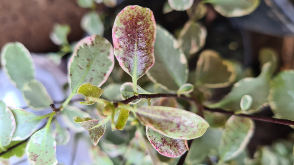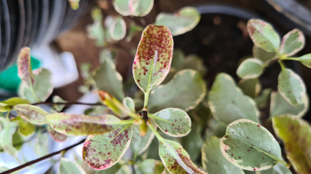 I bought pittosporum silver queen plants last month to create a small hedge. They looked ok on arrival but now most of them have these red/bown spots covering their leaves. Is this some sort of a disease? I wonder is anyone could help?