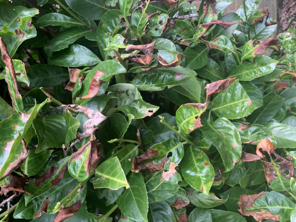 Several of our shrubs have developed brown/black leaves which then die. The photos show a Laurel with this problem but have had the same problem with a photinia. Any ideas on cause and what we can do to prevent it?