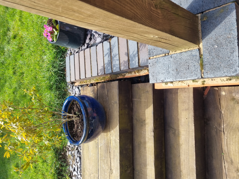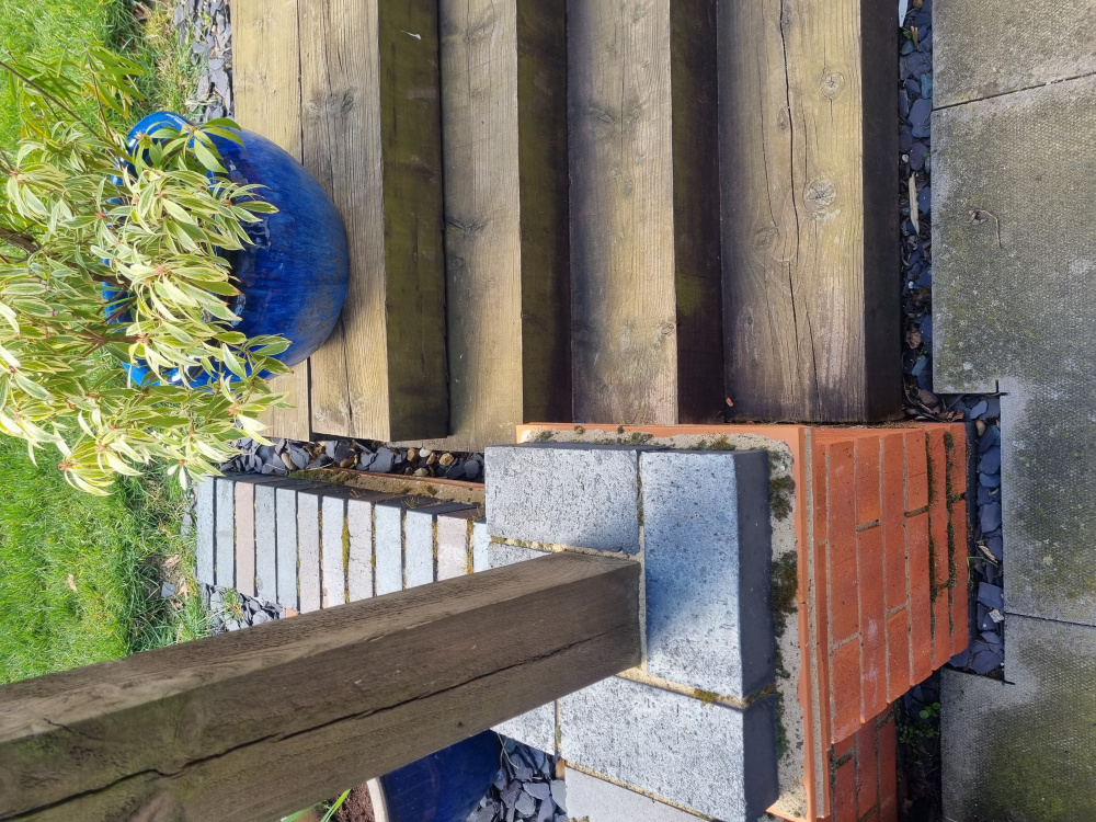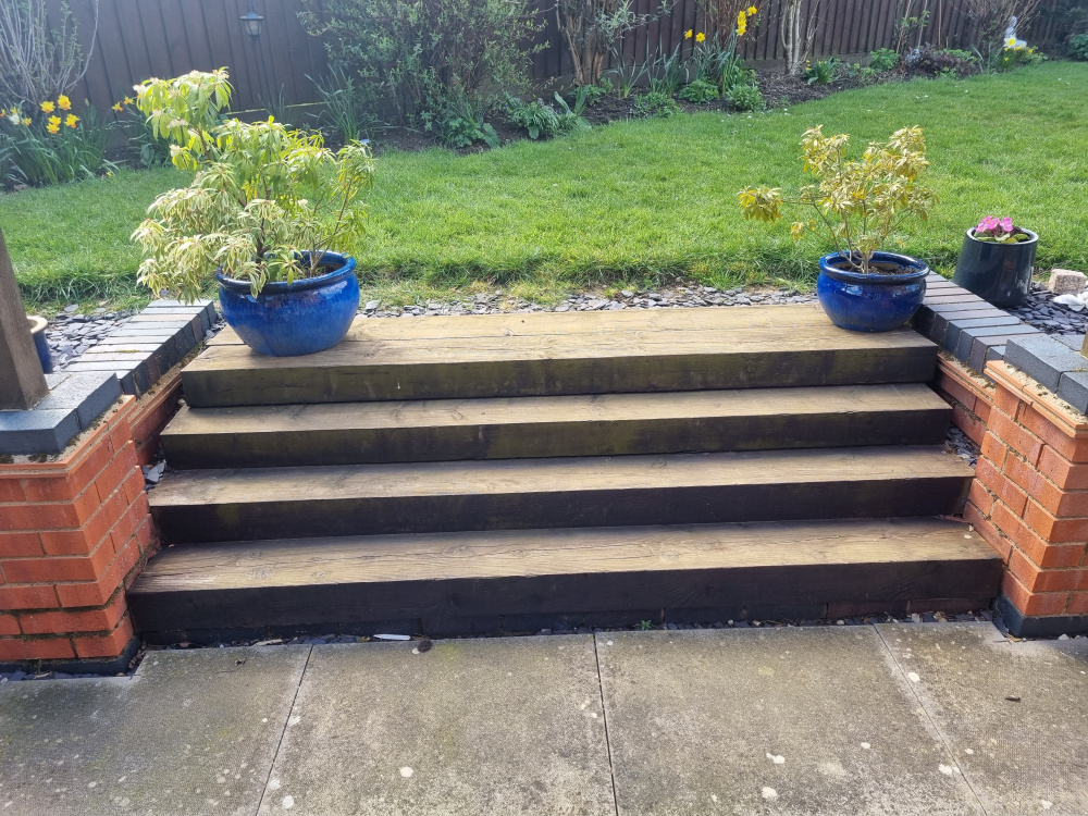 I want to change the sleeper steps to become a sleeper retaining wall to increase the patio size. I was thinking of using steel channel concreted in either side and placing the existing sleeper horizontally sitting inside the steel channel. I'm not sure if that would look OK as the steel channel would have to sit inside the existing wall.