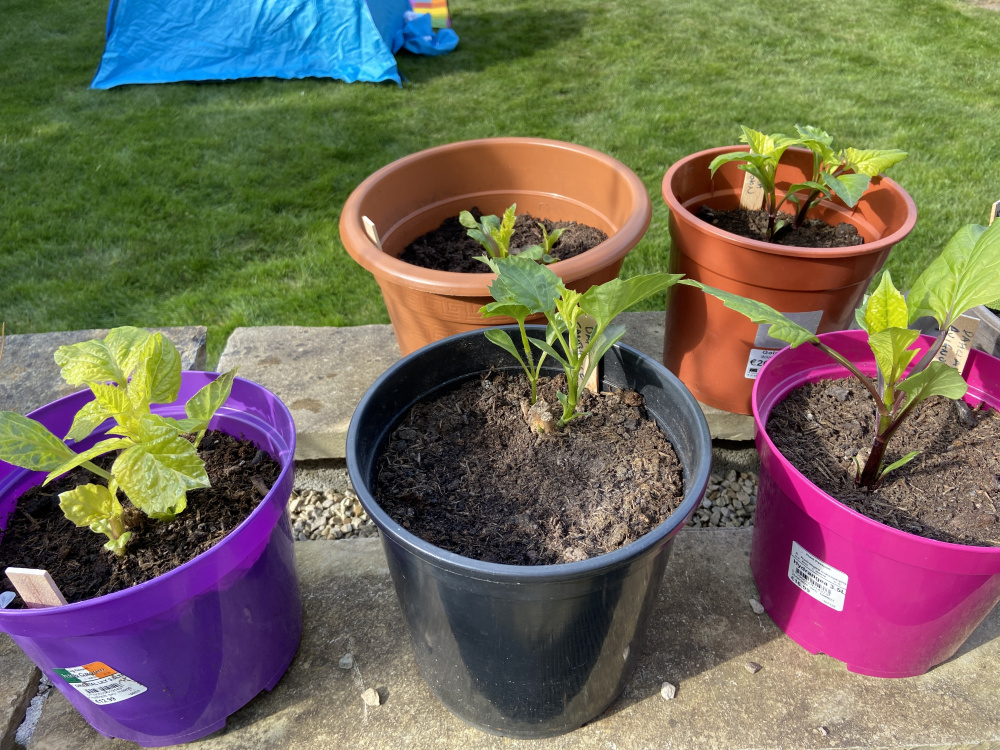 However, I bought quite a few (too many, arguably) new ones this year too and having watched the Sarah Raven video in which she puts them in pots not much bigger than the tubers to start them off under cover, I assumed that this was a way forward for me, with limited space, and all my pots occupied by spring flowering bulbs a while to come, and assumed I could pot them on later. But I am now concerned that I had got the wrong end of the stick.
