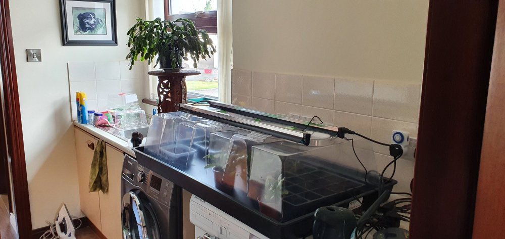 I took delivery of an electric heated lighted propagator yesterday. It is big. Do I set it across the sink in the utility room so that natural daylight hits it during the day? Or maybe upstairs underneath a skylight? At present it will only get some side light. Thoughts? It could go out in the garage at the window but it will get direct sunlight in the middle of the day at this time of year. Putting it upstairs means carrying plants and water upstairs. Hmmm?