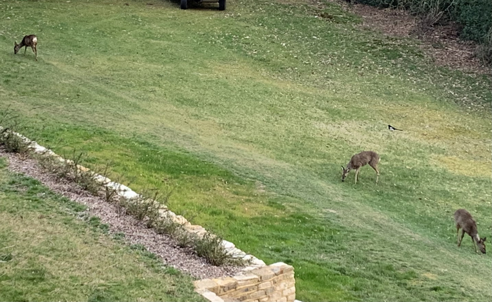 I see they turned up after the mulch mountain has been moved, lazy sods! We had "our" doe in the garden through the week and she was joined by a fine young buck on one morning. Post-lockdown extra traffic in the woods next to us might see them taking refuge in the garden more often now.