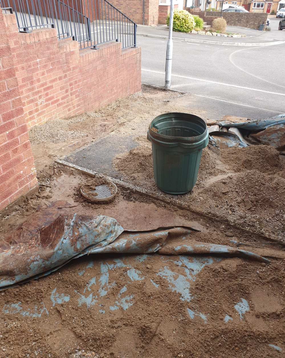 The house is elevated ie steps to front door, 3 bed end of link. It was built by Bellway in 2001. I've been here 13 years and I've only just got round to it. I'll attach a photo to what it looked like before. The gravelled area belongs to my house. The tarred hard stand is for next door to park their car. Weird set up. She can't drive so nobody parks there (under my lounge window).
