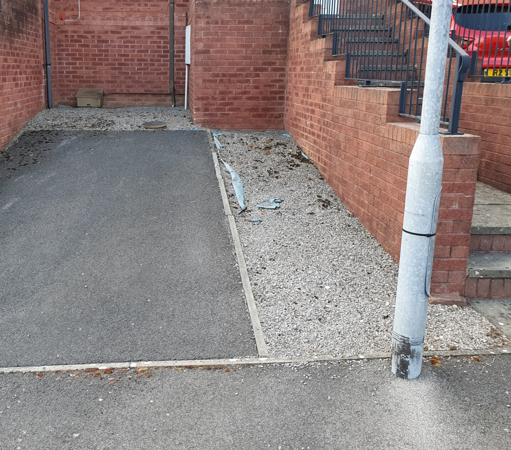 Hi Nanny, The house is elevated ie steps to front door, 3 bed end of link. It was built by Bellway in 2001. I've been here 13 years and I've only just got round to it. I'll attach a photo to what it looked like before. The gravelled area belongs to my house. The tarred hard stand is for next door to park their car. Weird set up. She can't drive so nobody parks there (under my lounge window). I want to make the area attractive. Give the front some greenery. I hate clay and it does nothing for drainage. Because of that and the blue sheeting underneath the original gravel it left weeds to grow and slimey algae on gravel. It was used for nothing. But as its part of the house I have no lawn or other borders apart from drive on the other side of steps. Removing clay to a hard base is what I wanted to do then I'll also get drainage. My neighbours opposite said same thing as Lox ref he'd have just skimmed top of clay then laid membrane and decorative gravel. I made work for myself but like to do it the proper way. So here I am looking for advice which is pretty much what I intended by Lox advice ref hard-core. Now I need inspiring with the decorative gravel which would compliment the house brick. Oh then I intend to find some planter boxes for the area to finish it off. Especially over the gas meter box. Might have to build one myself to hide it. It'll be far better than what was there before.