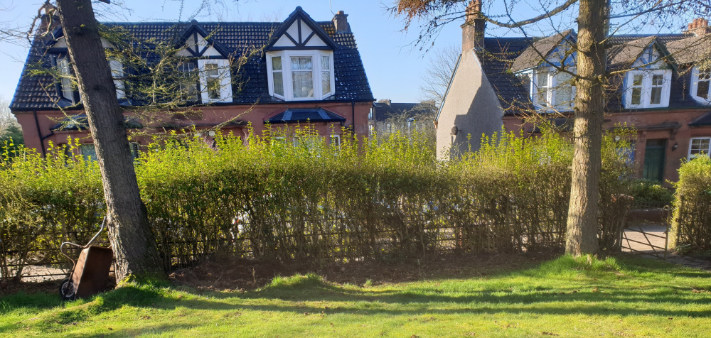 Any advice would be appreciated on how to thicken up my privet hedge. It's south facing and as you can see from this 8am shot, gets good sunlight. I moved in August 2020 and the garden was horribly overgrown and untouched for years. There are lots of brambles growing in the hedge which I plan to rip out. Also there are twigs from the overhanging trees throughout the hedge canopy, which I plan to remove. The soil looks like clay when I dig below a foot, but until then looks like good soil. The conifers above the hedge seem to have shed tonnes of detritus over the years on the garden side of the hedge. I can't do much about the other side, because it's a road.